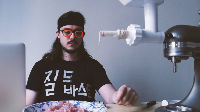 Réaliser une saucisse par la pensée, ça vous tente ? Nous mettons au point une machine industrielle à saucisses uniques. La machine reçoit huit ingrédients, chacun associé à une partie du cerveau. Le participant est invité à porter un casque électroencéphalographique composé de huit électrodes. Chacune récolte l’activité électrique d’une zone du cerveau, le signal sera utilisé pour déclencher la machine. L’activité cérébrale est analysée par un ordinateur qui détecte les potentiels d’action dans les différentes parties du cerveau, où sont placées les électrodes. Dès qu’un potentiel est détecté dans une zone, l’ingrédient qui lui est associé dans la machine à saucisses s’active et commence le remplissage du boyau. Les ingrédients, commandés par le cerveau, se succèdent dans le boyau pour constituer la saucisse et s’arrêtent à la demande du participant. La cuisson s’effectue selon les méthodes traditionnelles.