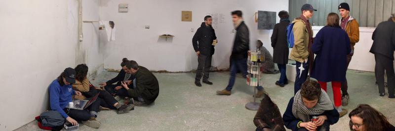 Dans un coin j'active la pièce par la penséePanoramas de l'exposition à Hangar 9, GenèveEn attente de la manifestation cérébraleDétails de la fabrication de la peinture